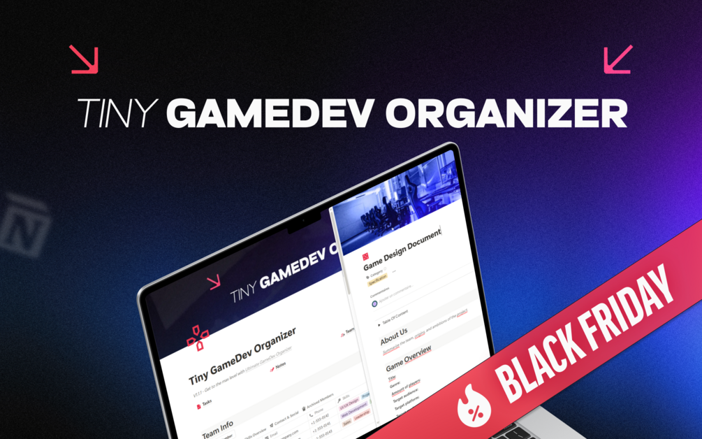 TGO is now available in the Notion Marketplace 👉 https://www.notion.so/templates/tiny-gamedev-organizer. Stay focused, organized, and on track with this Notion template for game development. Whether you're a solo developer or a small team, it's built to help you plan, build, and ship your game. Jump in without losing any time. Perfect for game jams or student projects.